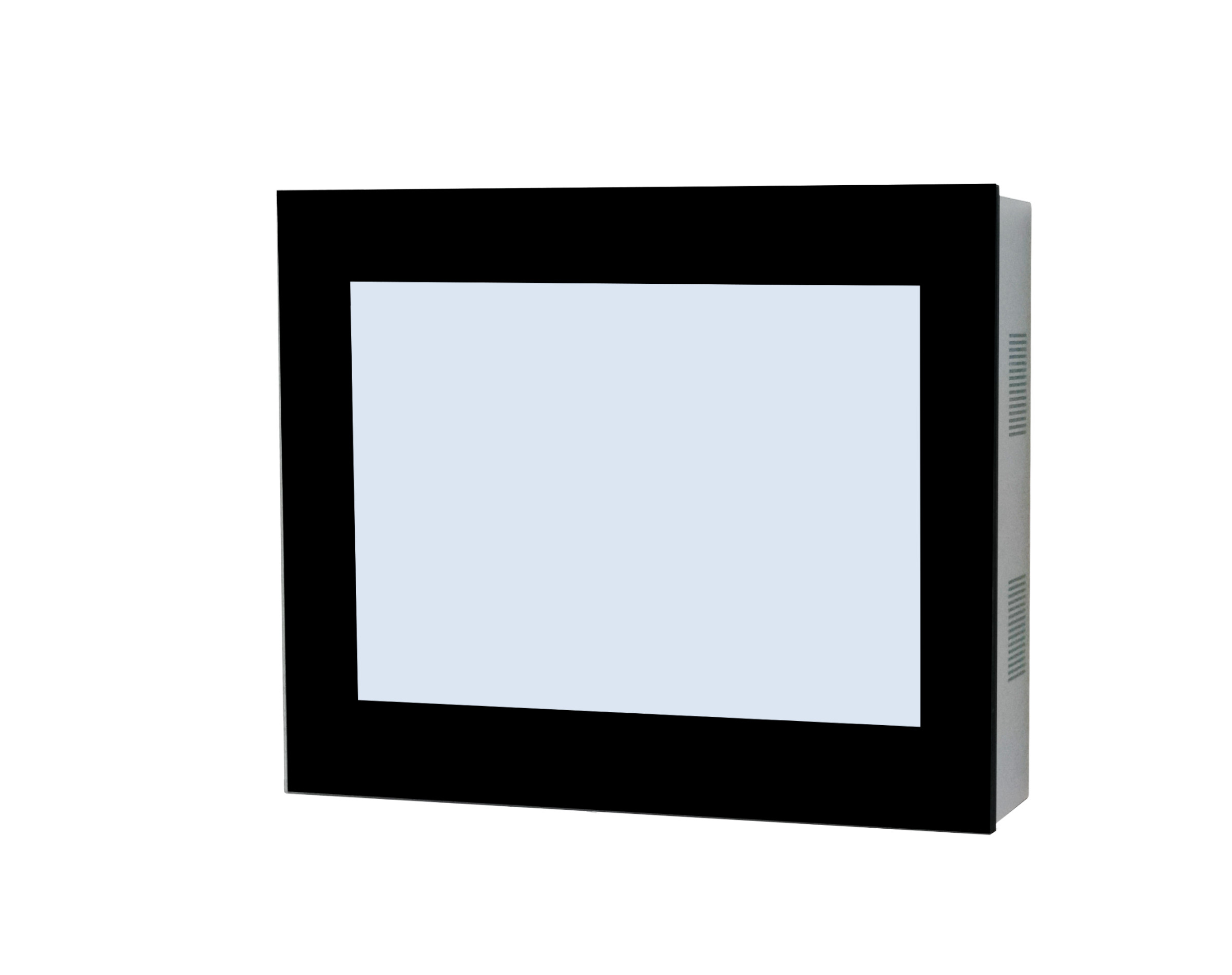 Das Modell 10.4 PW / LW (Display Board in Portrait- oder Landscape Format für Wandmontage) ist ein Gerät welches über ein Metallgehäuse in RAL-Farbe und über ein 10.4" Display Board für den 24/7 Betrieb verfügt. Das System wird direkt an die Wand geschraubt. Um den Monitor zu schützen wird er mit einem gehärteten 5mm Glas abgedeckt.