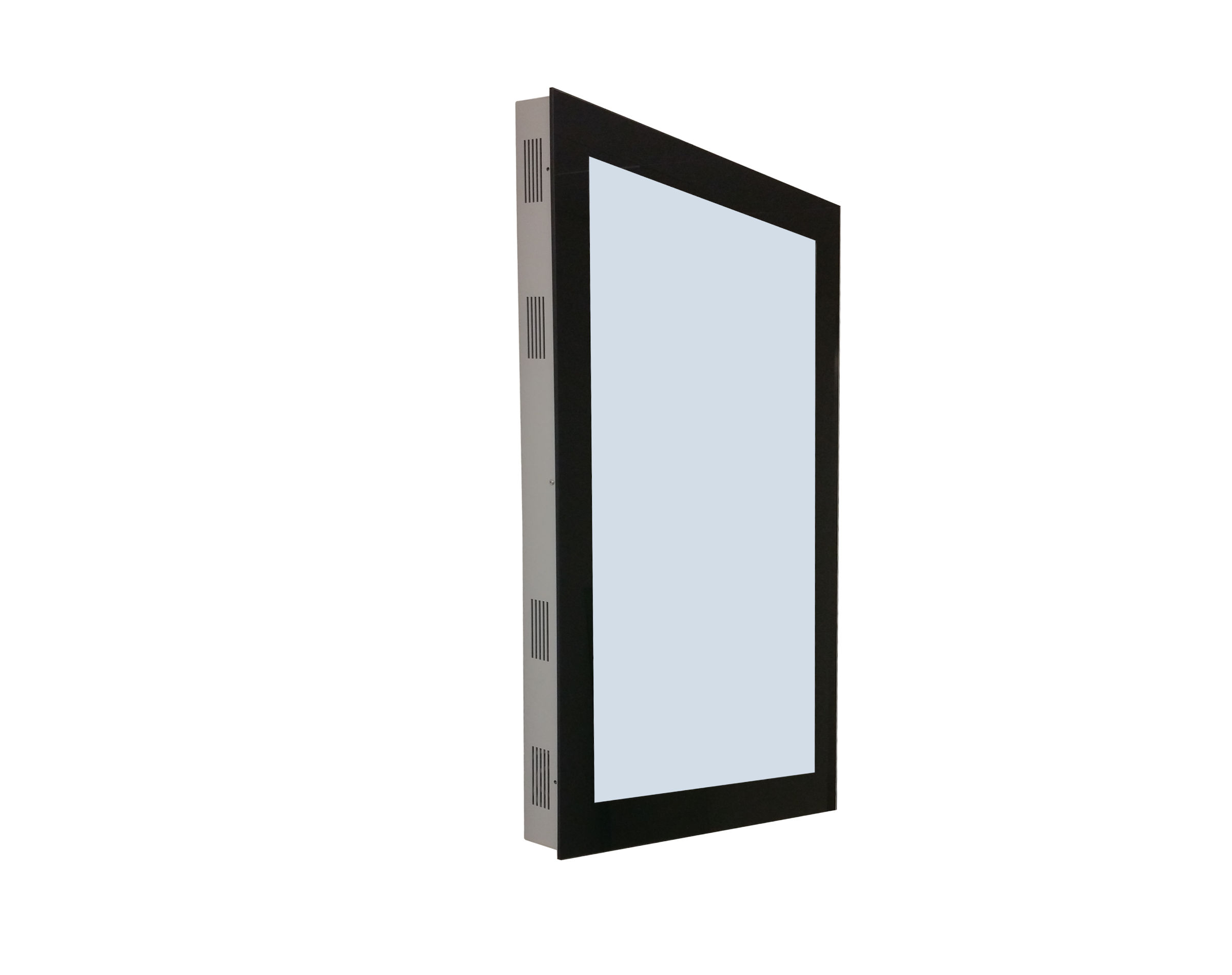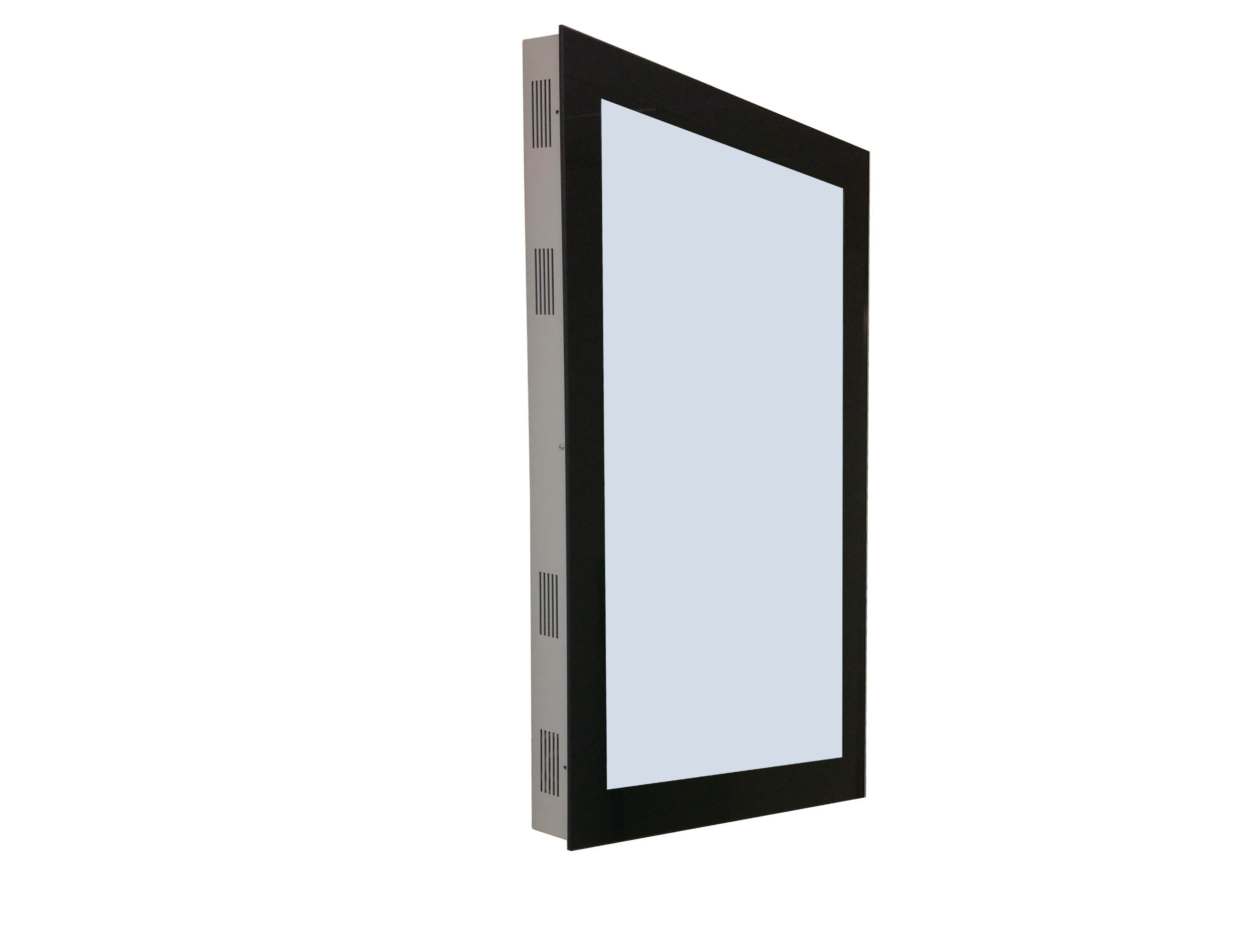 Das Modell 55 PW / LW (Display Board in Portrait- oder Landscape Format für Wandmontage) ist ein Gerät welches über ein Metallgehäuse in RAL-Farbe und über ein 55" Display Board für den 24/7 Betrieb verfügt. Das System wird direkt an die Wand geschraubt. Um den Monitor zu schützen wird er mit einem gehärteten 8mm Glas abgedeckt.